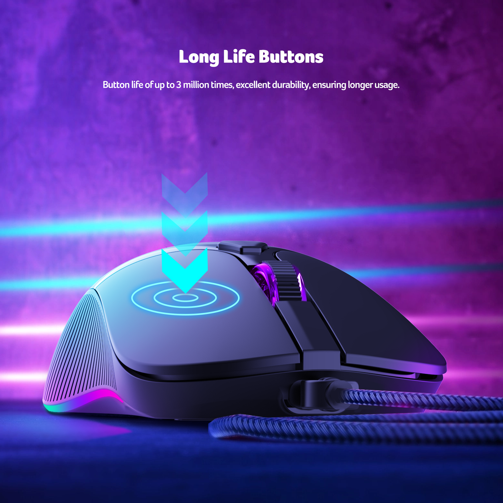 Com 6 botões bem posicionados, este mouse facilita o acesso rápido a comandos essenciais, otimizando seu tempo e sua performance.