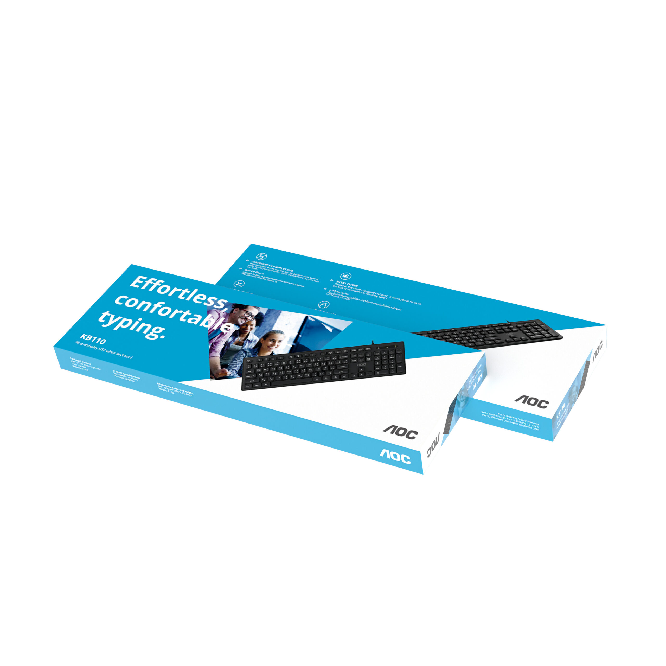 Com apenas 20mm de altura, estrutura slim e cabo de 1,5 metros, o teclado AOC combina estilo e funcionalidade. É só conectar e começar a usar — sem necessidade de drivers ou configurações adicionais.